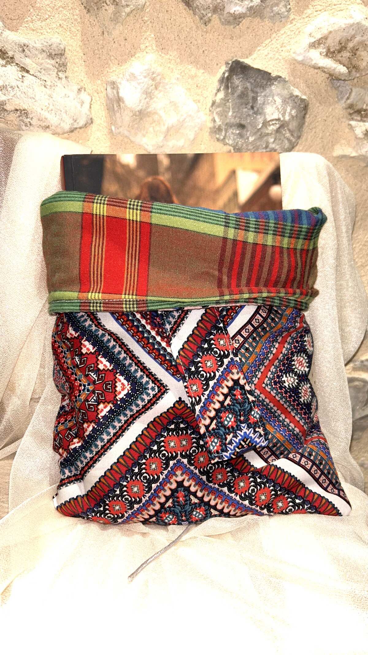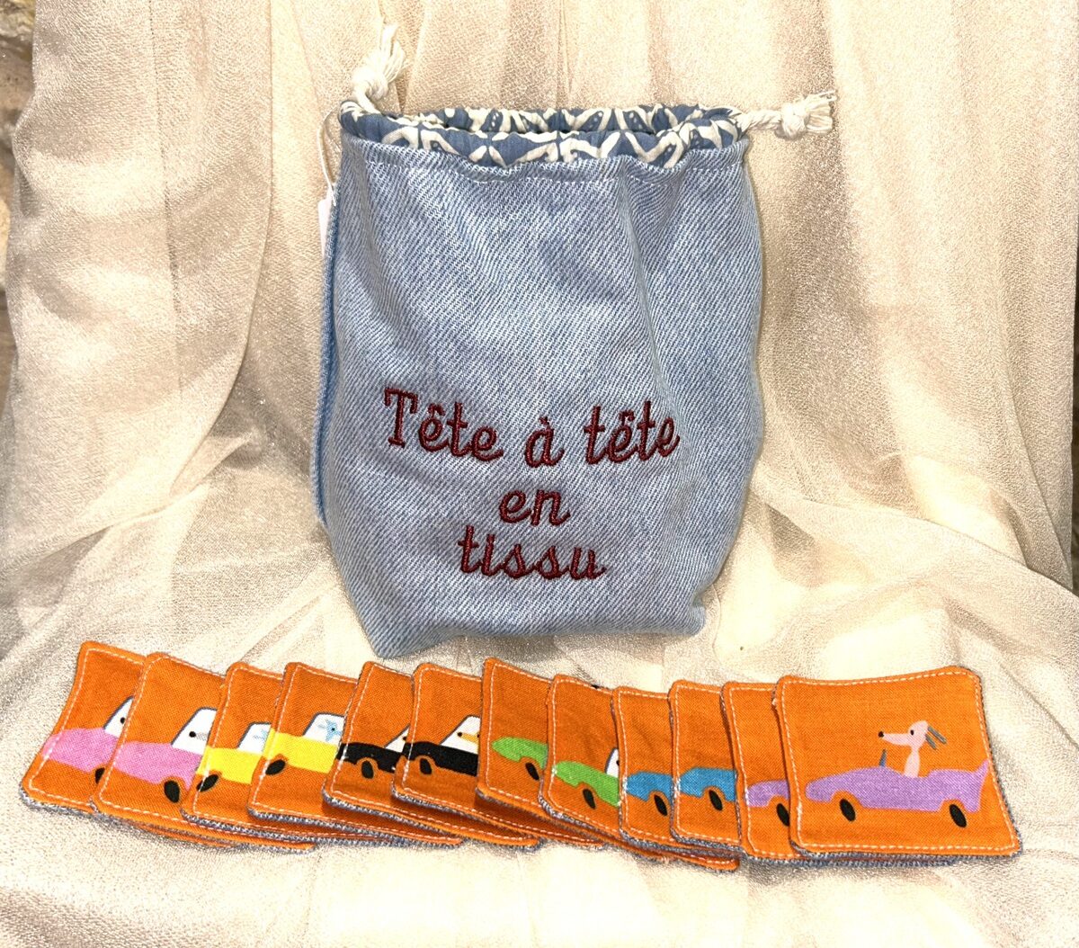 Chaque pièce — sacs, pochettes et accessoires — est faite main à partir de tissus recyclés, pour donner une seconde vie aux matières et offrir des créations uniques, durables et pleines de charme.