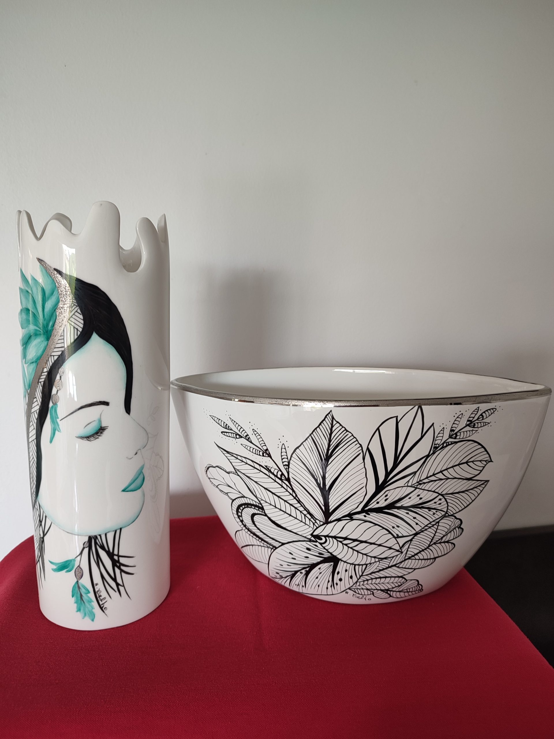 Peinture sur porcelaine. Je peins sur tous supports en porcelaine ou faïence (vase, pied de lampe, bougeoir, mug etc…).